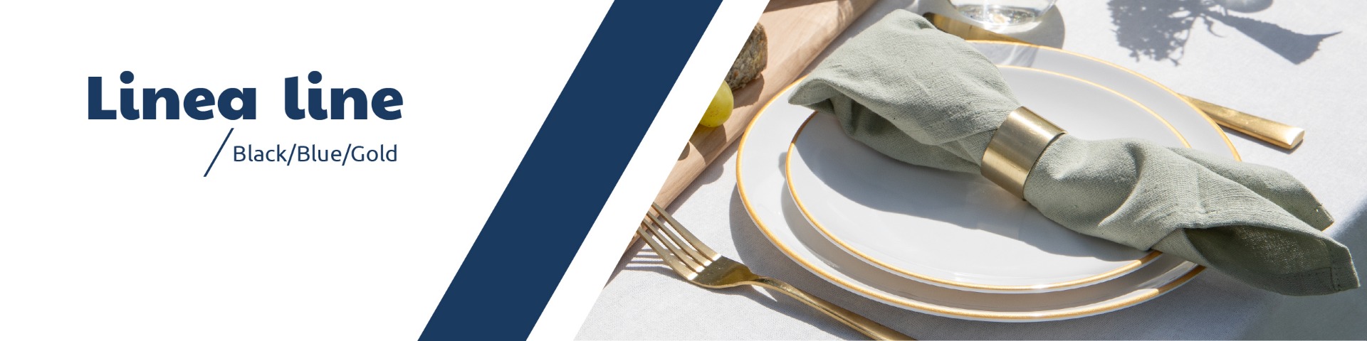 Naast de kleuren blauw en zwart heeft de Linea nu ook een gouden kleur toegevoegd. Hierdoor kan er een luxueuze tafel worden gedekt. In combinatie met het gouden bestek wordt de gedekte tafel helemaal compleet gemaakt.